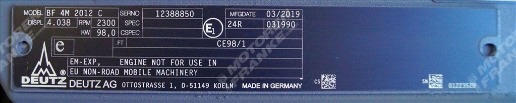 - engine type: BF4M2012C inkl. Kühler