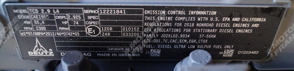 - Тип двигателя: TCD2.9L4 T4F/IIIB