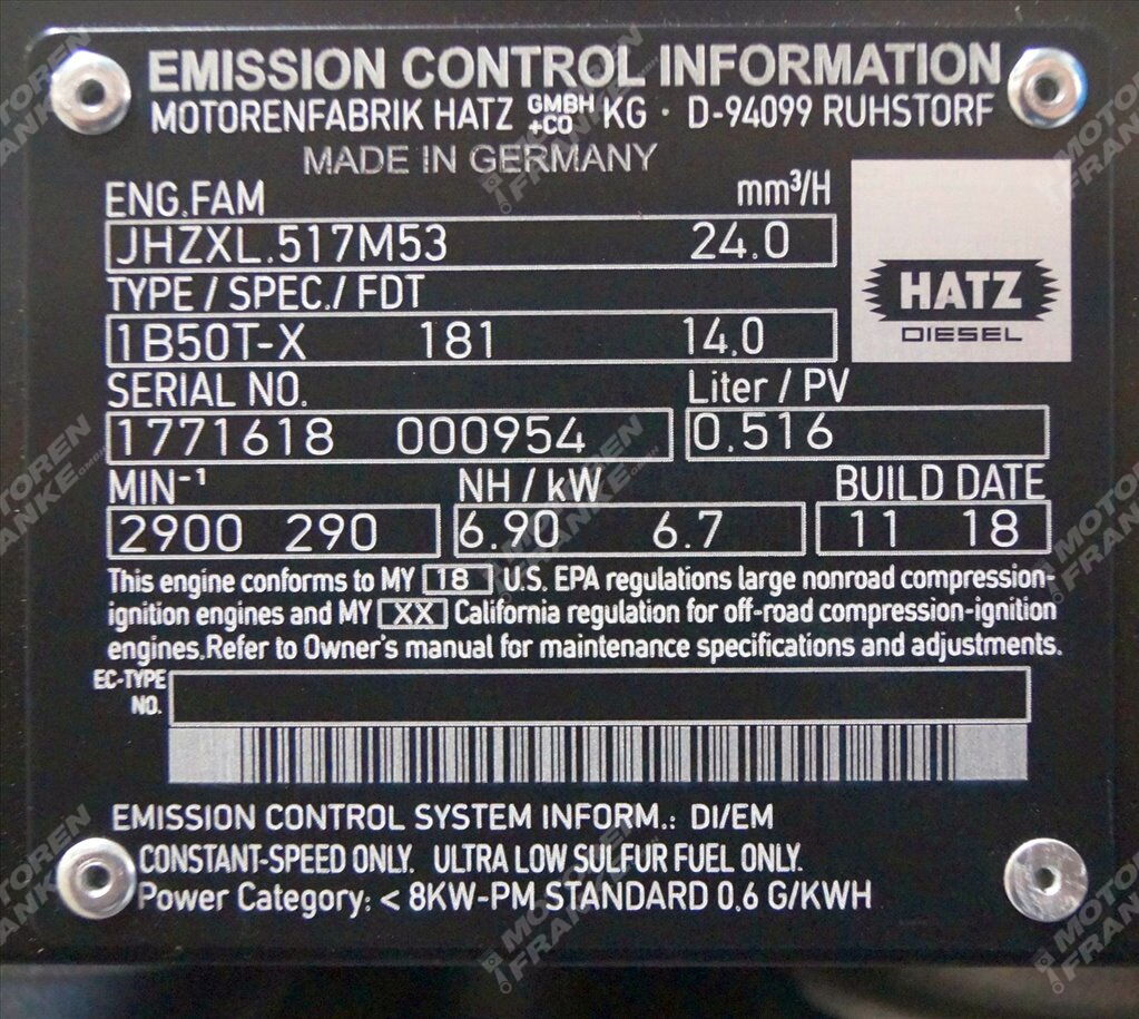 - Производитель: Hatz Motorenfabrik GmbH & Co. KG