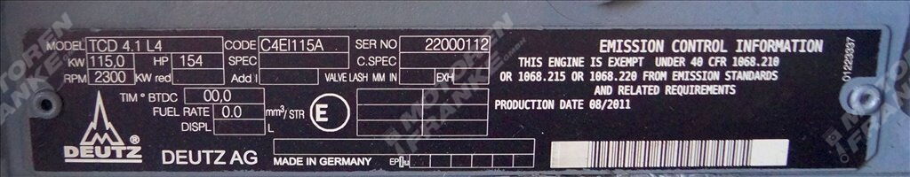 - Тип двигателя: TCD4.1L4 T4i CRT mit MAG